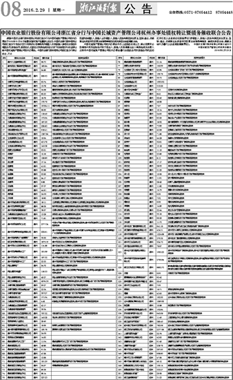 中国农业银行股份有限公司浙江省分行与中国长城资产管理公司杭州办事处债权转让暨债务催收联合公告