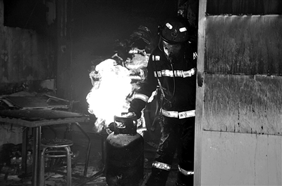 消防官兵赶到现场时,起火的民房已处于猛烈燃烧状态。而在灭火过程中,消防员发现房间内还有5个正在冒火的煤气瓶。煤气瓶随时可能因温度过高发生爆炸,如不及时转移,后果不堪设想。“水枪掩护,立即转移煤气瓶!”说着,侯波就冲进了火场,先后将5个冒火的煤气瓶转移到室外安全区域。