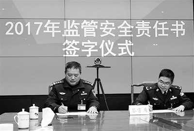 “签订责任书是一个固定形式,最主要的目的在于增强各单位的责任意识和执行意识,严格落实各项制度规定,全面完成明年各项工作目标,全力维护监狱持续安全稳定。”吴永照主持签订监管安全责任书时这样说道。23:50,监狱主要领导与各监区领导依次签订了2017年的监管安全责任书。