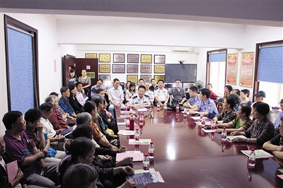 | 省公安厅经侦总队政委张申才(中)在杭州市拱墅区红石社区,向社区群众宣讲防范经济犯罪的技能。 |