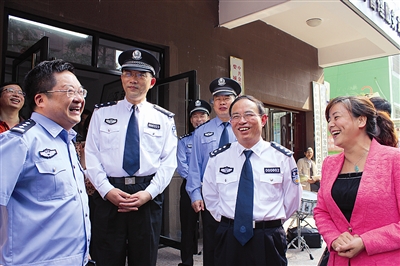 | 2015年5月15日上午,省公安厅党委副书记、常务副厅长洪巨平(右二)参加金华市公安局宣传日活动。 |