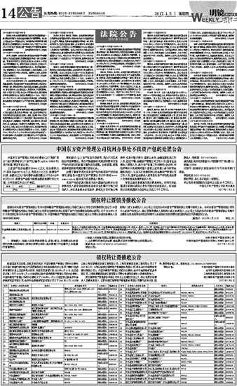 中国东方资产管理公司杭州办事处不良资产包的处置公告
