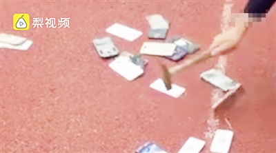 10月8日,河南南阳,某中学举行手机销毁大会,学校工作人员将几十部从学生处没收来的手机扔进水桶或用锤子砸烂。学校工作人员说,学生带手机到学校必须交给老师,否则手机将被销毁,这么做一切都是为学生好。