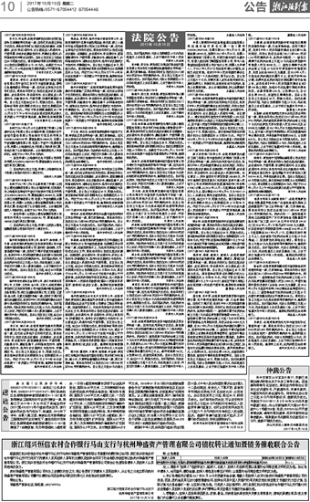 浙江绍兴恒信农村合作银行马山支行与杭州坤盛资产管理有限公司债权转让通知暨债务催收联合公告