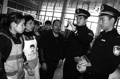昨天上午,台州市公安局椒江分局下陈派出所民警深入辖区企业,开展“禁毒宣传进车间”活动,向工人发放禁毒宣传资料,讲解常见毒品的种类和危害,帮助工人提高防毒、拒毒意识。