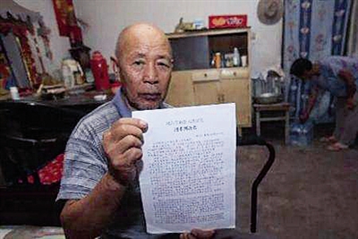近几日,微博、微信等社交媒体上一张照片被热传——白发老人手捧一纸公文,末尾两行内容是“上诉人(原审被告人)杨风申犯制造爆炸物罪,但免予刑事处罚。本判决为终审判决”。