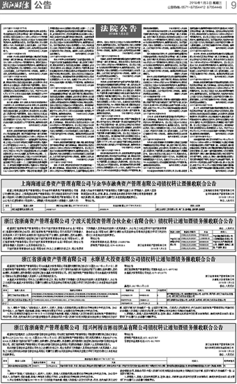 上海海通证券资产管理有限公司与金华市融典资产管理有限公司债权转让暨催收联合公告