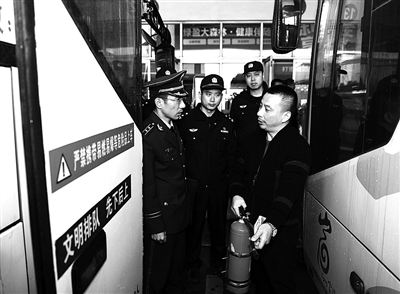 随后,检查人员来到车站检票口,对部分客车配备的消防设备进行检查,并提醒司机做好车载消防设备的日常维护保养工作。