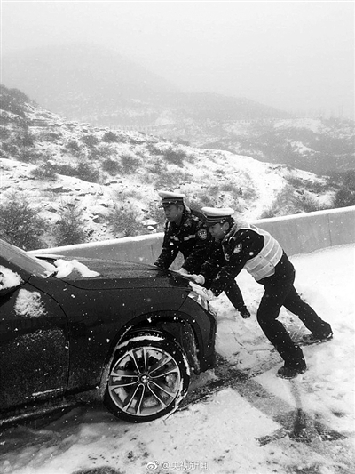 6日,因雪天路滑,山西高速交警三支队十三大队辖区内发生一小客车撞击防护墙的事故。民警平郭晋、郭磊、张杰迅速出警,勘查、处理事故,协助路政清障,在雪中工作一个多小时后,警帽已成“雪帽”。网友:感谢他们的辛勤坚守,雪天路滑,小心驾驶!