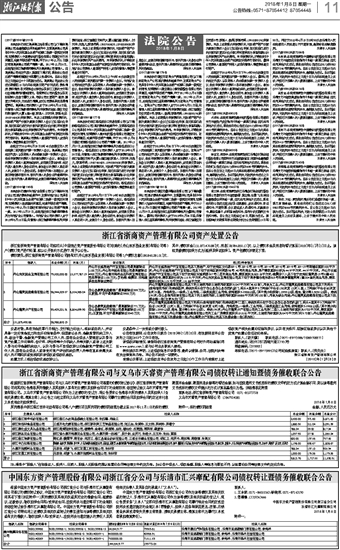 浙江省浙商资产管理有限公司与义乌市天睿资产管理有限公司债权转让通知暨债务催收联合公告