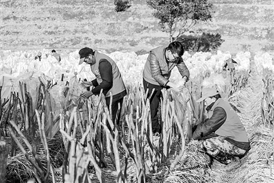 昨日,长兴县龙山街道川步村党员干部帮助村民为映山红幼苗套薄膜袋,确保3000多株映山红温暖过冬。