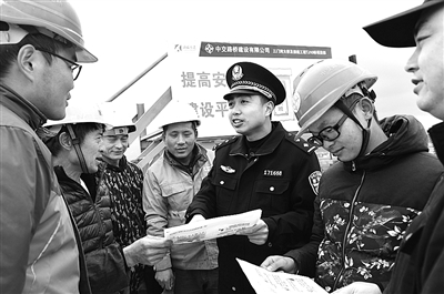 春节临近,三门县公安局健跳派出所结合“大走访”活动,组织民警深入工地开展防骗、防盗宣传,提醒务工人员通过正规渠道预约购买返乡车票,防止上当受骗。图为民警在工地向务工人员讲解真假火车票识别技巧。
