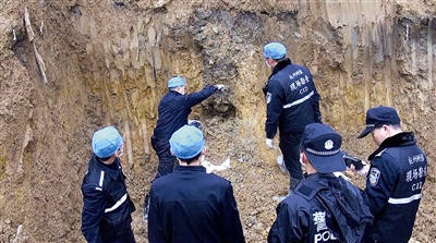 功夫不负有心人。2017年1月17日,也就是挖山的第14天早上,专案组终于找到了,挖出了一具腐败的男尸。