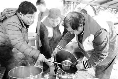 1月10日下午,一锅刚刚熬好的姜茶送到了杭州江干区新塘家园的城管驿站里,在驿站休息的环卫工人和路面工作人员纷纷品尝起来。冬日里,一杯小小的姜茶不仅让他们暖了身子,更暖进了心里。