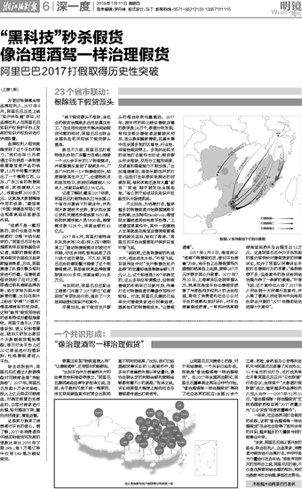 记者了解到,截至2017年底,阿里巴巴打假特战队已与全国23个省市开展线下打假合作,并利用大数据技术优势,累计向全国公安机关推送涉假线索1910条,协助抓捕涉案人员1606名,捣毁窝点数1328个,涉案金额约43亿元。