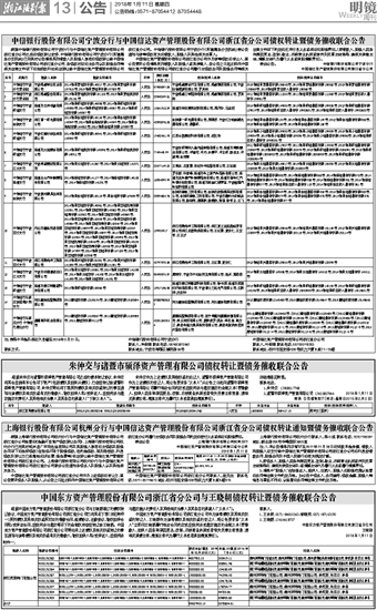 上海银行股份有限公司杭州分行与中国信达资产管理股份有限公司浙江省分公司债权转让通知暨债务催收联合公告