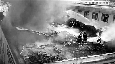 1月11日上午10点20许,温岭市城东街道福德隆鞋业有限公司一厂房的顶楼突发大火。接警后,温岭消防大队官兵及附近多个专职消防队队员到场救援。