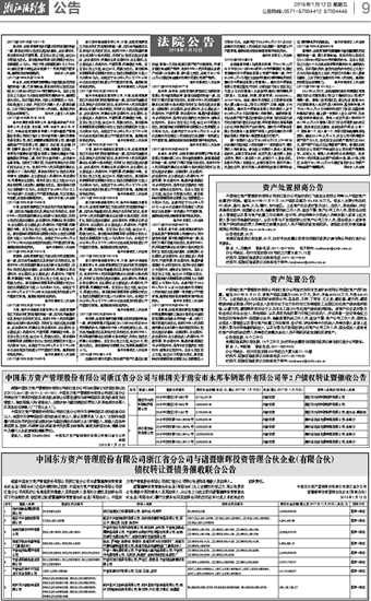 中国东方资产管理股份有限公司浙江省分公司与诸暨康晖投资管理合伙企业(有限合伙) 债权转让暨债务催收联合公告