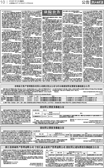 浙江省浙商资产管理有限公司 宁波汇鑫永道资产管理有限公司 债权转让通知暨债务催收联合公告