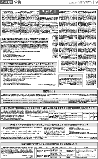 宁波江东豪洋进出口有限公司等2户债权资产包处置公告