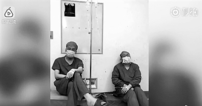 两名医生手术间隙打吊针:病人等不了