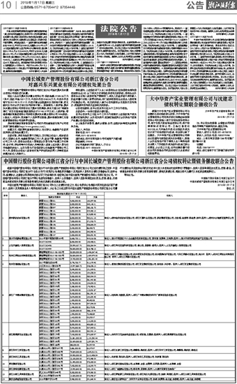 中国银行股份有限公司浙江省分行与中国长城资产管理股份有限公司浙江省分公司债权转让暨债务催收联合公告