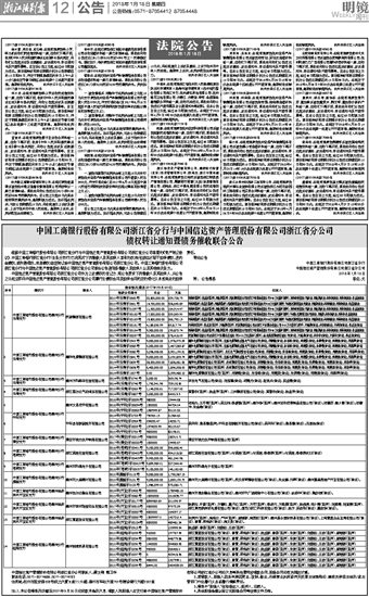 中国工商银行股份有限公司浙江省分行与中国信达资产管理股份有限公司浙江省分公司 债权转让通知暨债务催收联合公告
