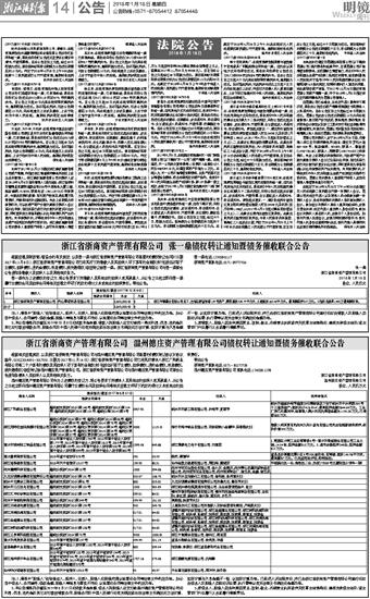 浙江省浙商资产管理有限公司 张一鼎债权转让通知暨债务催收联合公告