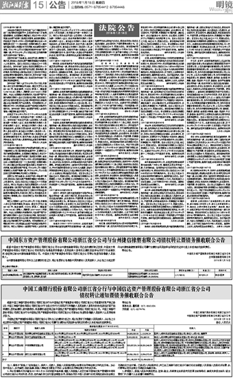 中国工商银行股份有限公司浙江省分行与中国信达资产管理股份有限公司浙江省分公司 债权转让通知暨债务催收联合公告