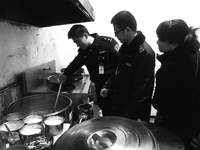 1月17日晚,东阳市公安局横店分局联合横店市场监督管理局,对辖区内所有餐饮业进行集中清查,对所有用油清单、进价单逐一核对,确保餐桌安全。通讯员 徐步文