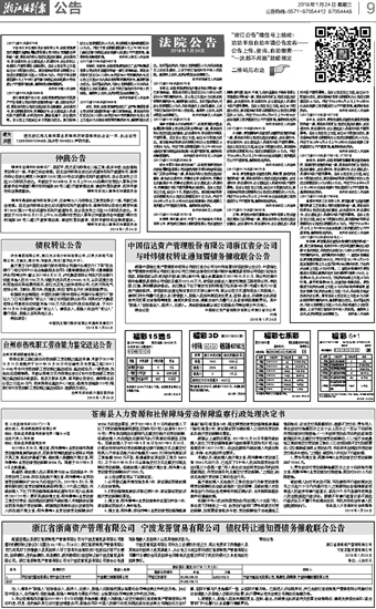 浙江省浙商资产管理有限公司 宁波龙誉贸易有限公司 债权转让通知暨债务催收联合公告