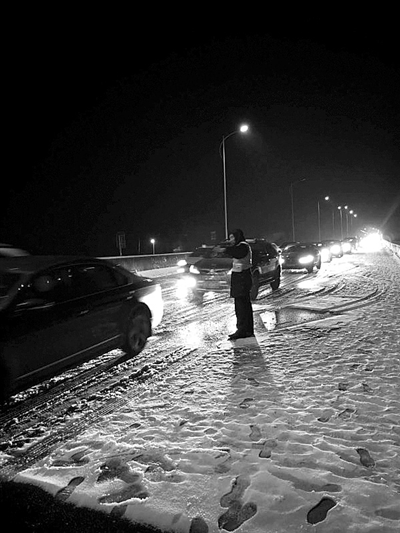 1月24日晚上,就在杭州市民的“朋友圈”都在为飘飘雪花欢呼时,高速公路上早已严阵以待:撒融雪剂、上吹雪车、铺就草垫子、加强巡逻,高速交警们在雪中忙得不可开交。