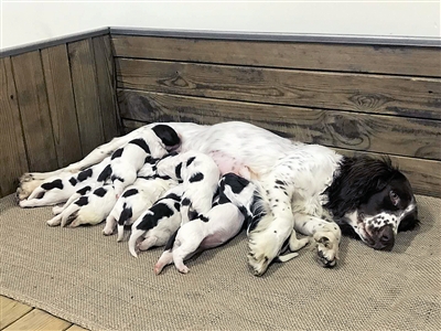 昨天,杭州萧山警方通报了一则非常喜气的消息:在农历狗年来临之际,功勋警犬娜娜当妈了,而且她还是位“英雄母亲”,两周前,她一口气产下6公3母九胞胎。