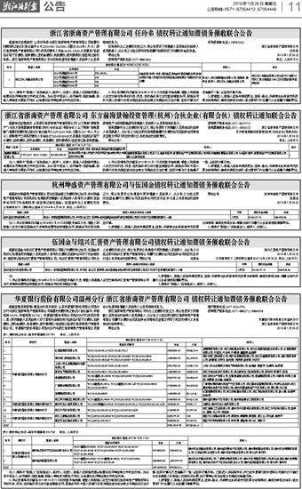 华夏银行股份有限公司温州分行 浙江省浙商资产管理有限公司 债权转让通知暨债务催收联合公告