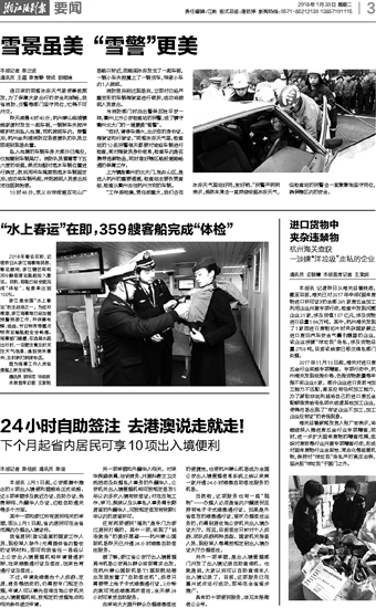 还有两项便民“福利”是专门为浙江居民打造的。其中一项,实现了“说走就走”的美好愿望——杭州萧山国际机场昨天已开通24小时港澳自助签注服务。