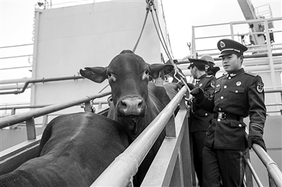 这批肉牛自1月16日从澳大利亚汤斯维尔港起运,已在海上漂泊了10多天。“比格森”轮上共有来自中国、澳大利亚、菲律宾籍的船员、饲养员、兽医27人,边检官兵以最快速度完成了相关人员的证件和行李物品的检查,办理好手续,并协同检疫部门做好船舶卸货期间的口岸限定区的管理工作。据悉,镇海港目前是澳大利亚屠宰牛在宁波唯一指定的入境口岸。