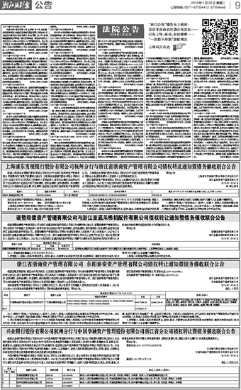 上海浦东发展银行股份有限公司杭州分行与浙江省浙商资产管理有限公司债权转让通知暨债务催收联合公告