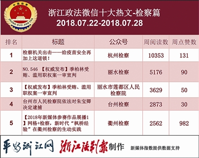 《检察机关出击——给疫苗安全再加上这道锁!》一文位列热文榜第一。现在,老百姓高度关注疫苗安全,文章紧跟当下热点,赢得不少阅读量。