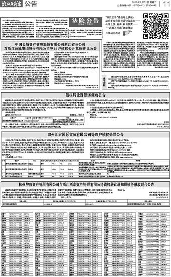 中国长城资产管理股份有限公司浙江省分公司 对浙江晶崴集团股份有限公司等16户债权公开竞价转让公告
