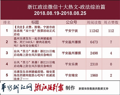 “平安宁波”是匹“黑马”,凭借投票活动脱颖而出,《【关注】点赞、致敬,宁波市政法系统“双十佳”投票活动正式启动》收获的阅读数和点赞数双双领跑榜单。这项投票活动正在进行中,小伙伴们动动手指选出心中的“双十佳”吧!