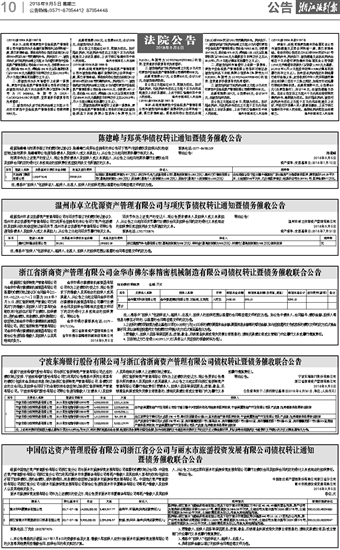 宁波东海银行股份有限公司与浙江省浙商资产管理有限公司债权转让暨债务催收联合公告
