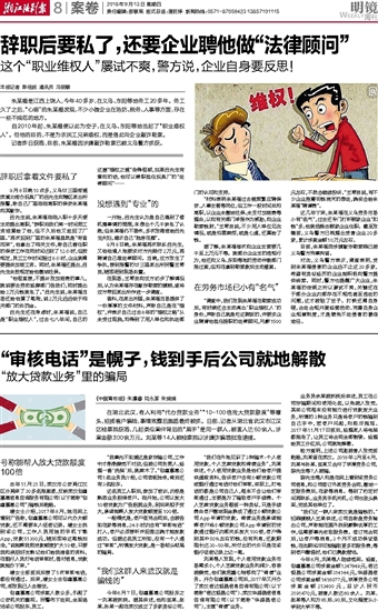 “调查中,我们发现朱某福在勒索成功后,有时候还会主动亮出‘职业维权人’的身份,声称自己就是吃这碗饭的,并要求企业聘请他担任挂职的法律顾问,月薪1500元左右,不然会继续投诉。”王琴良说,有不少企业抱着花钱消灾的想法,确实会给朱某福“聘请费”。