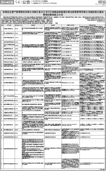 中国信达资产管理股份有限公司浙江省分公司与宁波梅山保税港区朗元投资管理有限公司债权转让通知 暨债权催收联合公告
