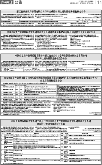 中国信达资产管理股份有限公司浙江省分公司与宁海县馨源泰纸制品有限公司 债权转让通知暨债务催收联合公告