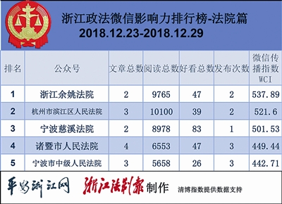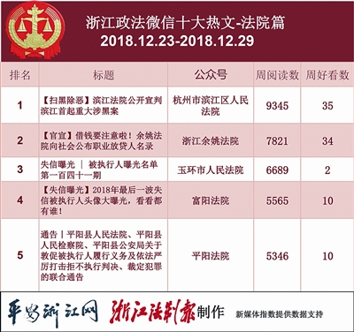 本期法院热文榜,扫黑除恶和失信曝光依旧是热门话题,而“浙江余姚法院”的《【官宣】借钱要注意啦!余姚法院向社会公布职业放贷人名录》一文公布了职业放贷人名录,与同类型文章相比话题新颖,获得了不少阅读量。