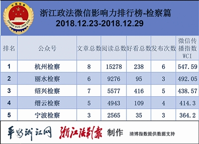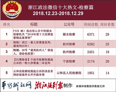 本期检察院榜,“杭州检察”“丽水检察”“绍兴检察”位列前三。在热文榜前三中,有两篇是投票文章,看来时不时举行一些投票类活动,是赢得关注度的一个小窍门。
