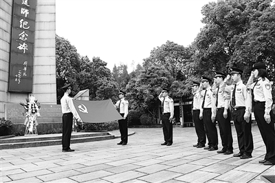“我宣誓,我志愿加入中国共产党……”每月20号,是山门派出所的党员固定活动日,全体民警在红军挺进师纪念碑前重温入党誓词。“如今,红色基因已经融入山门派出所每个民警的血脉,成为‘对党忠诚、服务人民、执法公正、纪律严明’的深厚底色和本色。”山门派出所的民警们说。