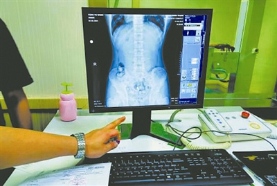 | X光机透视下的带毒人腹部 |
