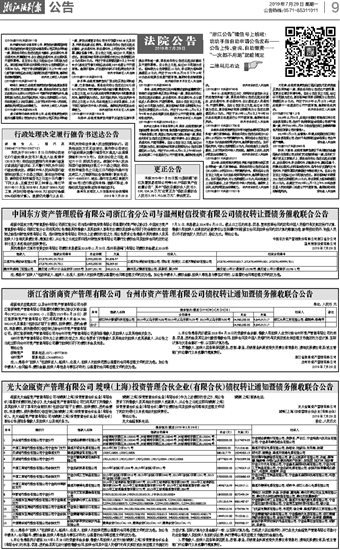 浙江省浙商资产管理有限公司 台州市资产管理有限公司债权转让通知暨债务催收联合公告