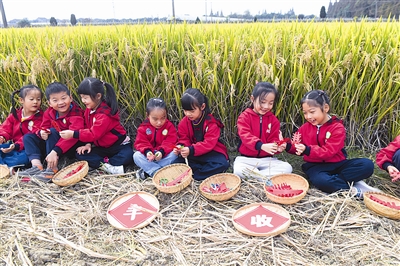 11月6日,孩子们在老师的带领下用剪纸的方式来表现稻谷的形态。当日,浙江省长兴县李家巷镇中心幼儿园利用乡村本土资源,让孩子走进稻田,开启“稻田课堂”主题实践活动。